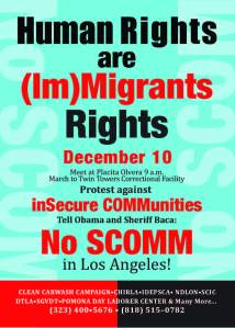 Under SCOMM, thousands of predominantly Latino immigrants who have been detained by local police agencies for minor infractions, detained in mostly private prisons, and have been deported from the United States. According to the organizers of the Human Rights Day/Dec. 10 march, “the Obama administration has deported more people than any other President in US History.”