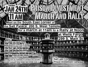RALLY- Tuesday Jan 24th 11am Meet at the corner of 200 S. West Temple for a March to Wells Fargo at 299 S. Main St., Salt Lake City, UT. Come let Wells Fargo what you think about them profiting off of prisons and detaining people. Click here for facebook event