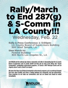 Join NDLON and the national day laborer community and allies in demanding that the LA County Board of Supervisors and LA County Sheriff Lee Baca put an end to the 287(g) and “Secure Communities” immigration enforcement programs. LA County is NOT Maricopa County and Los Angeles doesn’t need a Sheriff Joe Arpaio!