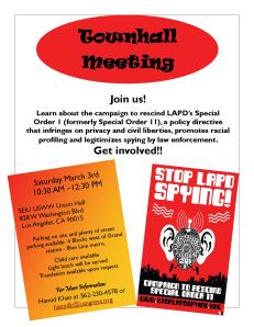 What: Town Hall Meeting on LAPD’s “Spying” Policies