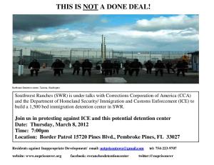 Southwest Ranches (SWR) is under talks with Corrections Corporation of America (CCA) and the Department of Homeland Security/ Immigration and Customs Enforcement (ICE) to build a 1,500 bed immigration detention center in SWR.