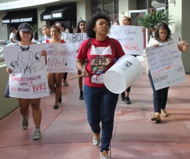 Article 1 of the UN Declaration of Human Rights states that human beings are “endowed with reason and conscience and should act towards one another in a spirit of [siblinghood].” Today we celebrate that since the Declaration was drafted 49 years ago, people have used it as a tool to develop the field of human rights so urgently needed in the United States. The Declaration was drafted well before the for-profit prison industry exploded on Wall Street, but we apply it to our fight every day at Enlace, an international multiracial alliance of working people that organize for self-determination. For the past 9 years Enlace has impacted the field of human rights in the US through our Prison Divestment campaigns and earlier this year, we achieved an enormous victory in Portland, Oregon. Our aim with the public was to bring to light the fact that profiting from the separations of families of color including immigrants, violations of human rights, and general pain caused by prisons is inhumane and unacceptable.