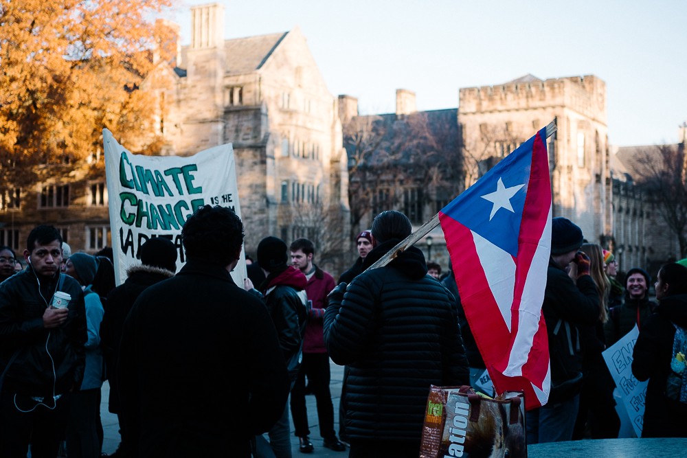 On Monday, Mar. 4, a stroll up Whitney Avenue would have brought you into the midst of a huddle of figures assembling quietly outside the Yale Investments Office. The protesters arrived in ones and twos, carrying posters, cameras, and water bottles. Having reached critical mass, the assortment of undergrads, post-grads, and New Haven activists filed into 55 Whitney to take up residence in the foyer until Yale agreed to two things: divest fully from its holdings in fossil fuel companies, and cancel its holdings in Puerto Rican debt. The protest, which was the Yale Endowment Justice Coalition’s second sit-in, resulted in the arrest of 17 students.