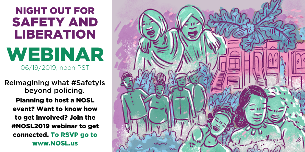 | On August 6, Night Out For Safety and Liberation (NOSL) will bring communities together in cities across the country to reimagine what public safety means beyond policing, surveillance and punishment. NOSL events have included block parties, vigils, rallies, and teach-ins to highlight what makes our communities safe: living wage jobs, healthy food, healthcare, housing, education, and more.Whether you’ve hosted a NOSL event in the past or you want to know how to get involved in your city, join the webinar to get connected. |
