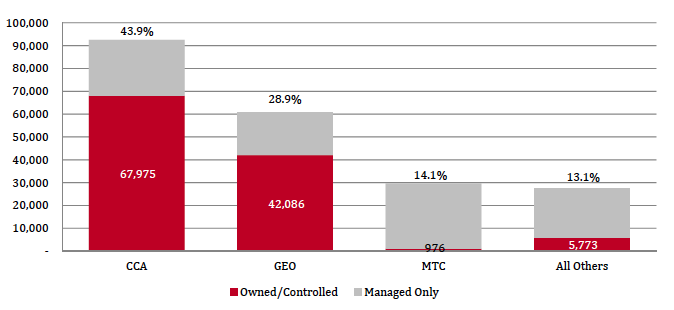 In the U.S., approximately 75 percent of the private prison market is controlled by two companies: Corrections Corporation of America and GEO Group.